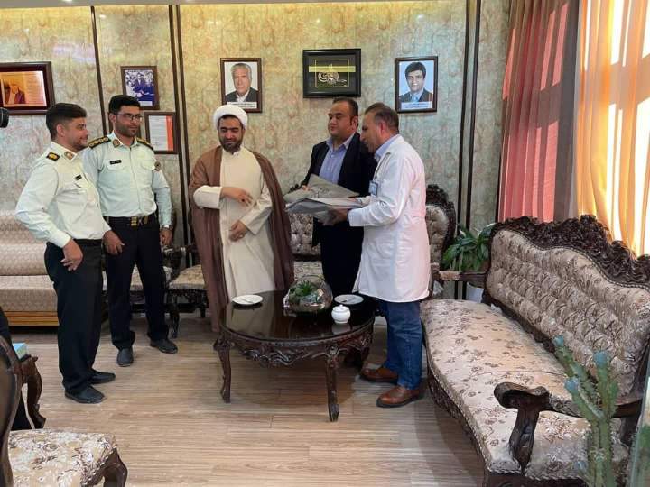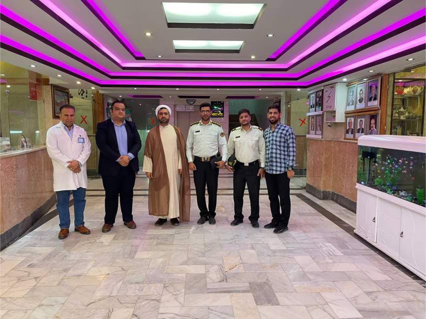 جناب سروان حمید عسگری ریاست محترم کلانتری ۳۴ (محمود آباد) اصفهان و همراهان از آقای صادق کتیرایی مدیرعامل و آقای علیرضا شعبانی مسئول فنی آسایشگاه خیریه سالمندان صادقیه اصفهان مورخ ۱۴۰۳/۳/۲۰