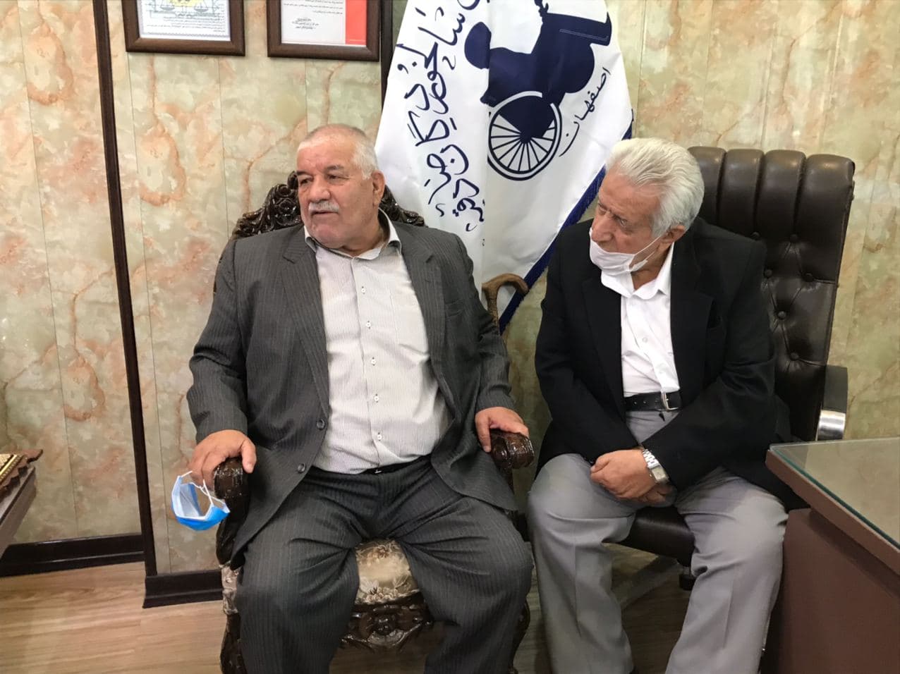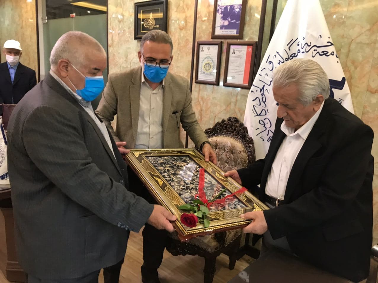 بازديد خيرين نيكوكار آقاي حاج شكراله باقريان ، حاج اقا گروهي و آقاي دكتر مومن زاده از آسايشگاه خيريه سالمندان صادقيه اصفهان و تقدير جناب آقاي كيا عضو هيأت امنا صادقيه از حاج كريم پوستي رئيس هيأت مديره صادقيه و آقاي حاج شكراله باقريان ، مورخ ٩٩/٦/٢٠